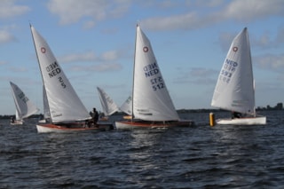 Enfin, in race zes vielen de puzzel stukjes op de definitieve plek. Fokko won de pre start en kwam een straat lengte voor het veld bij de eerste ton. Daarna hebben we hem eigenlijk niet meer gezien. En deed hij wat hij moest doen. Voer zijn tweede eerste plek, maar had het kampioenschap helaas nog niet zelf in de hand. Dat ging afhangen van de meester en de leerling, zoals zij op zaterdag bij de borrel werden genoemd. De leerling dacht in het tweede kruisrak er vandoor te gaan. Zou finishen op een derde plek en daarmee het kampioenschap pakken. Maar de winst is pas echt binnen bij de finish. Want wat schets onze verbazing, dat die houten boten er zich ineens mee gaan bemoeien. Dat was niet de afspraak, maar wel erg leuk. De één noemt het mazzel de ander wiegen, maar wat gaat dat hout voor de wind hard zeg. En zo geruisloos. Je hoort ze niet en ineens bahm, dan hebben ze je te pakken. Vorige week was er nog een handel gaande in de snelste “plastic” schepen. Inmiddels moet je gewoon een houten boot hebben. Ook dit hoort bij dat nieuwe level in de Olympia jollen club, waar we dit weekend mee te maken hebben gehad. Maar wat gebeurde er met de fanatieke leerling? Nou, die dacht de meest korte route naar de ton te pakken, met een extra uitdaging. Want menig duikoord zou er jaloers op zijn, hoeveel moois je aan planten kunt aanschouwen op de Belter. En dan wel onder water. Sterker nog.... als je de route zo uitkient door al dat moois, dan zou dat nog wel eens een Wiedebokaal titel kunnen kosten.