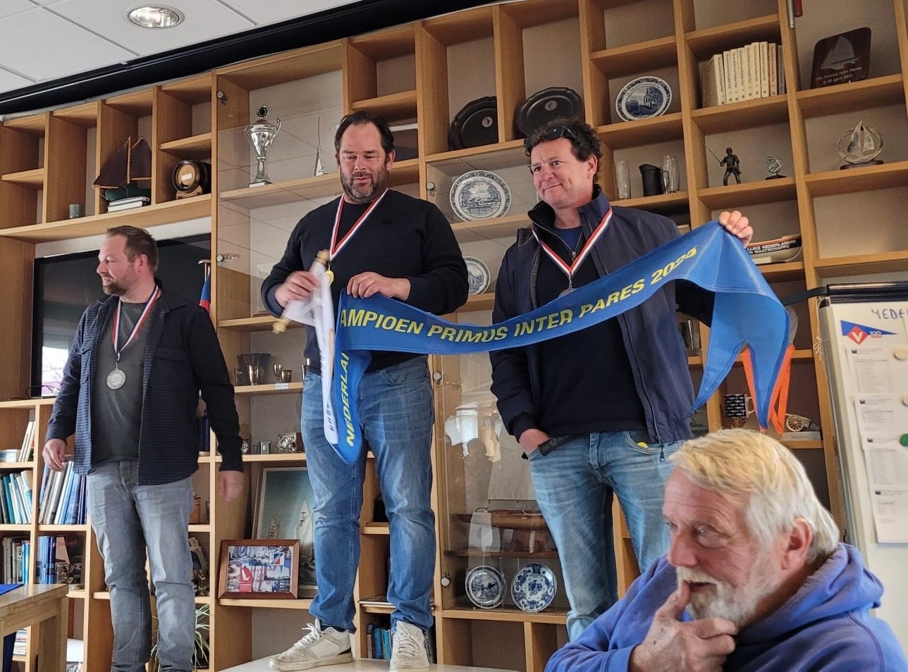 Vader en zoon, beide in 2025 thuiskomend met een Blauwe Wimpel in dus hetzelfde jaar gewonnen én dat in één klasse. Dat is nog nooit eerder voorgekomen op de Nederlandse zeilwedstrijden banen! Een absolute primeur en dus heel bijzonder.
