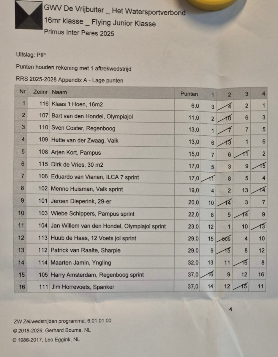 In het najaar moest de PIP 2025 nog verplaatst worden naar dit maartse weekend, wegens veel te veel wind. En ook nu kwam het moeizaam op gang. En op de zondag werden niet de geplande vier startjes gemaakt, maar met drie starts kwam er toch een aftrek wedstrijd bij. En dat gooit het klassement altijd weer door elkaar.
