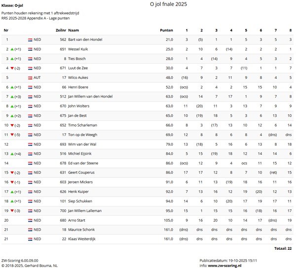 Het slotakkoord van het KWS-zeilseizoen werd dit jaar een prachtig en spannend weekend. Met 21 ingeschreven deelnemers en een lichtweervoorspelling beloofde het een interessante strijd te worden, zeker met lichtweer specialisten als Hans en Willem aan de start. Uiteindelijk gingen 17 jollen…